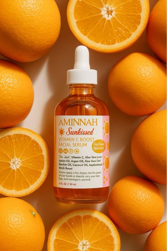 AMINNAH Sunkissed Vitamin C Boost Facial Serum - Daily Glow with Vitamin C, Aloe Vera, Jojoba Oil & Argan Oil for Hydration & Protection